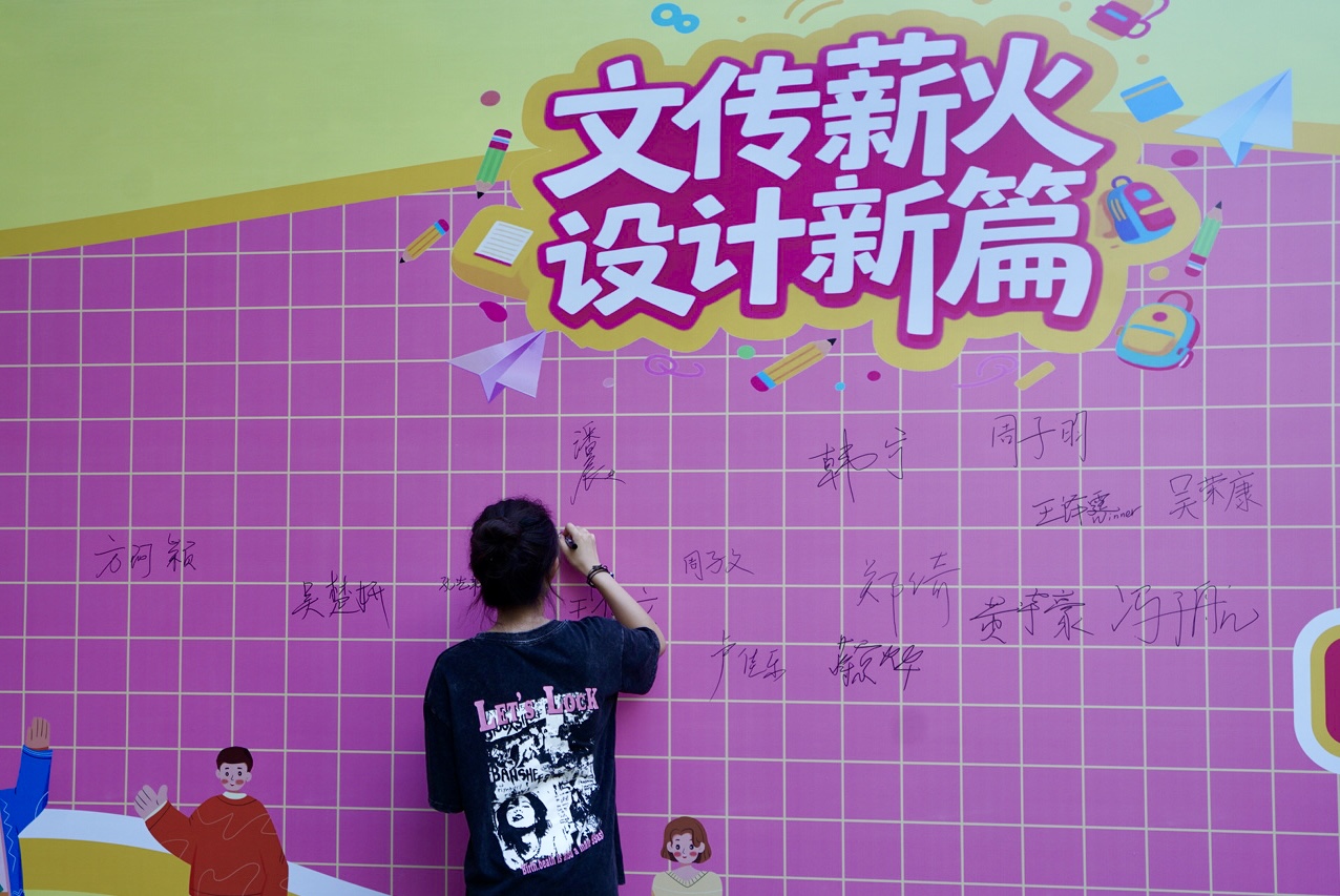 签到墙前,一笔一划,