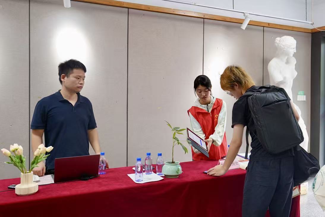 9月13日上午,学院领导来到文设学院迎新点,了解工作安排,关怀迎新进展,送上暖心问候。