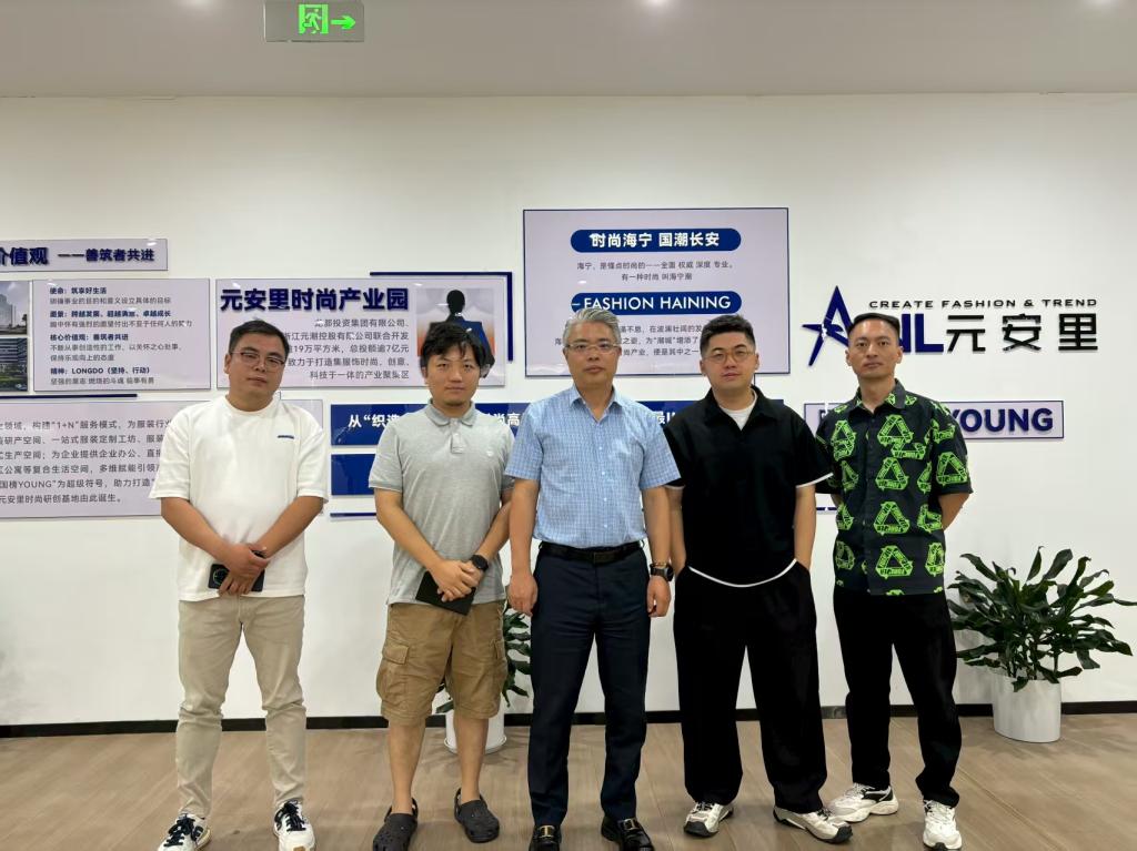 2025年8月28日,学院副院长高扬、服装与服饰设计系主任张一舟、时尚产业学院创意设计实践中心副主任余正龙一行,前往浙江省海宁市的长安镇,实地探访了浙江元安里控股有限公司旗下的时尚产业园,旨在深入开展访企拓岗工作,进一步拓宽学院学生的就业渠道和创业平台。园区的主要股东方领导孔徐杰、负责招商运营的总监林祥威对我院代表团的到访表示了热烈的欢迎。