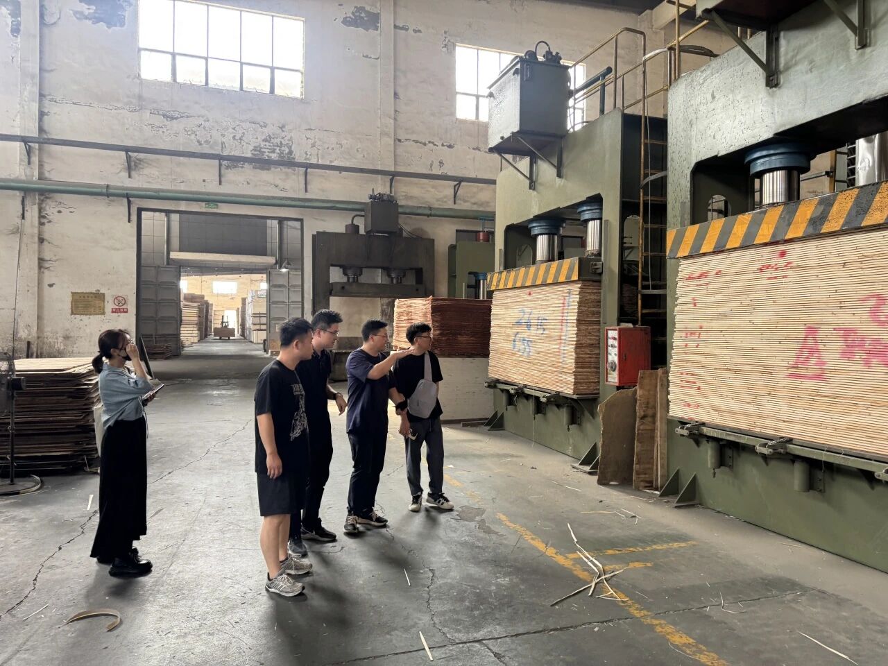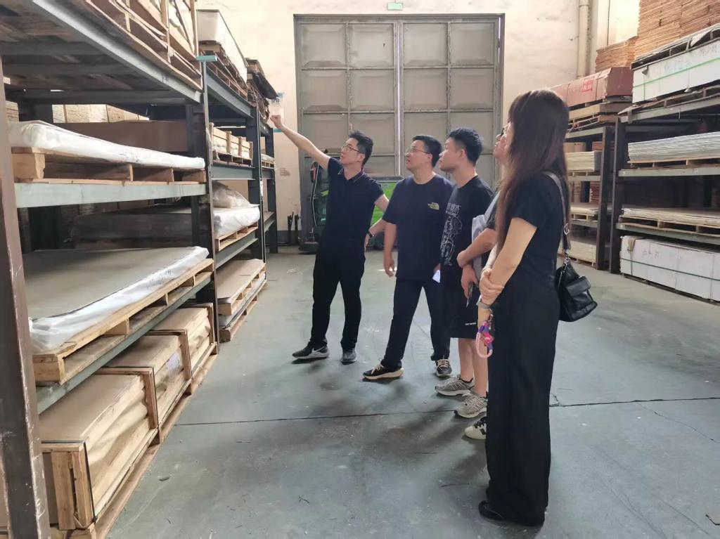 胡悦老师介绍了文设学院及广告专业发展近况,近年来毕业生就业情况,并亲切慰问校友的工作和家庭生活。唐武峰老师就板材市场现状、品牌推广与营销等方面的经验与挑战,与校友展开交流与分享。孙力对母校的培养表示衷心感谢,介绍了公司发展近况,同时分享了近几年的个人成长经历和心得体会。期间,在孙力的带领下,我院教师一行参观了企业的现代化工厂与产品展示厅,深入了解了板材从原材料加工到成品产出的全流程。