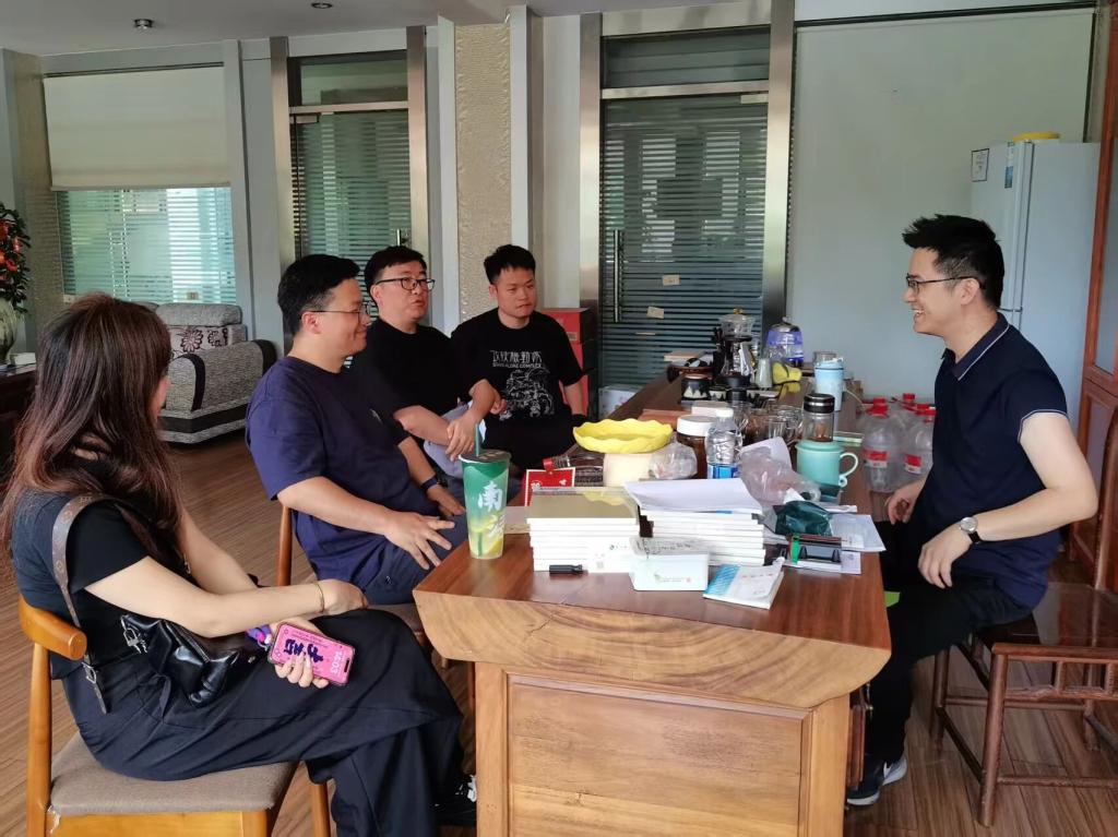 为加强校企合作交流,提升人才培养质量,拓宽学生就业渠道,6月27日,304am永利集团在线平台广告系主任胡悦,广告系教师唐武峰、费宇拓、毛豆,以及21级辅导员陈丁男赴湖州,走访2013届广告专业毕业生孙力,前往校友企业浙江船老大装饰材料有限公司,开展访企拓岗活动,受到了校友的热情接待。