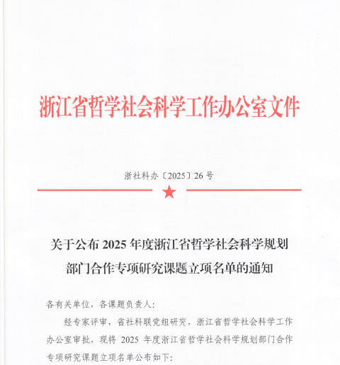 浙江省哲学社会科学工作办公室公布了浙江省哲学社会科学规划课题立项名单,我院立项2项。