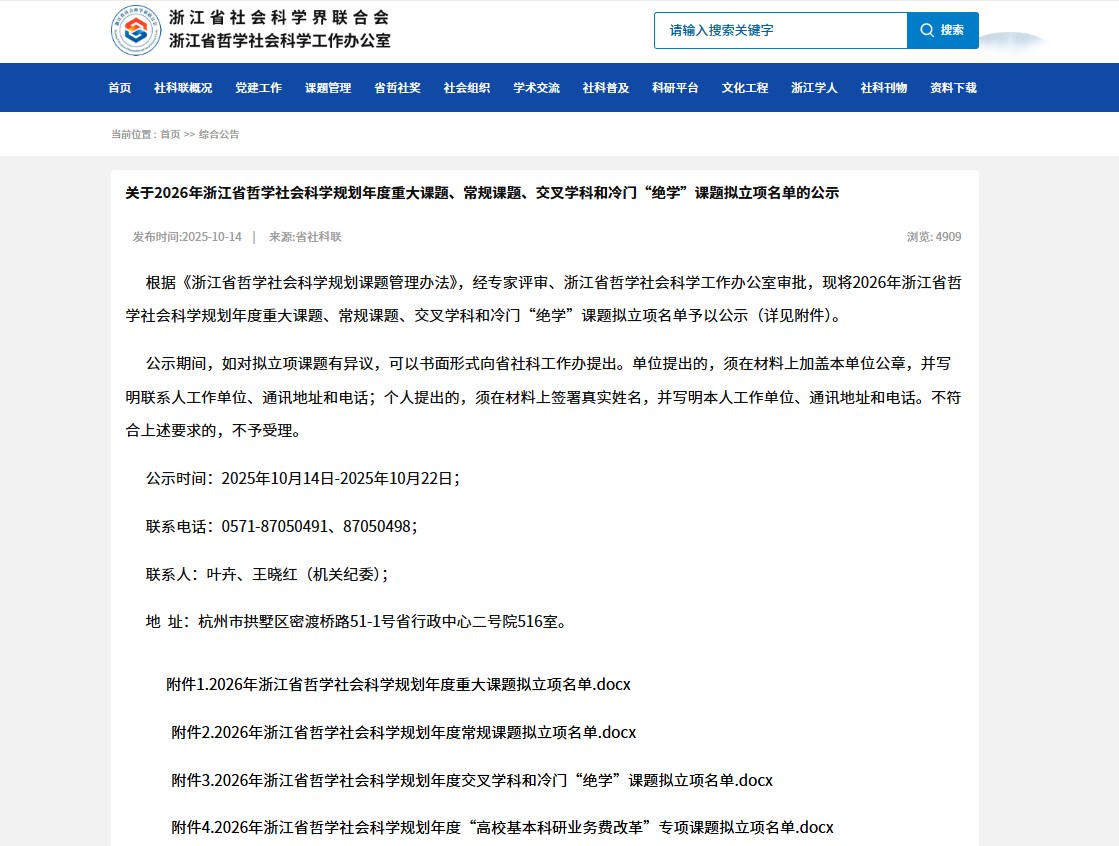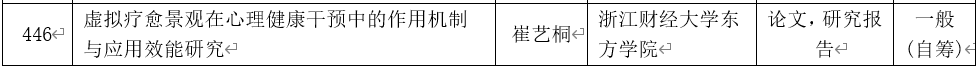 近日,2026年浙江省哲学社会科学规划年度重大课题、常规课题、交叉学科和冷门“绝学”课题拟立项名单已公示结束。我院教师崔艺桐主持的课题《虚拟疗愈景观在心理健康干预中的作用机制与应用效能研究》获立常规课题。