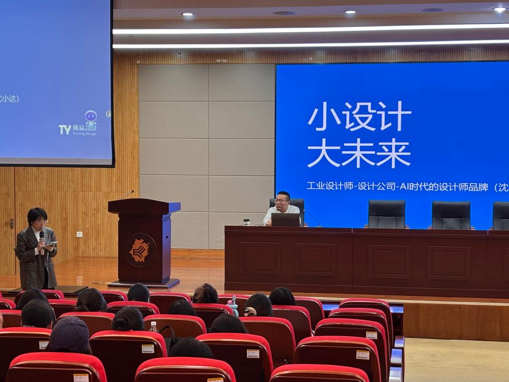 2025年10月23日,杭州腾赢工业设计有限公司总经理沈达先生应工业设计系王芳老师邀请,为我院设计专业师生带来了主题为“AI时代的设计师品牌”的精彩讲座。他结合自身十余年的设计服务与近年的产品开发运营经验,深入探讨了人工智能技术为产品设计开发领域带来的深刻变革。