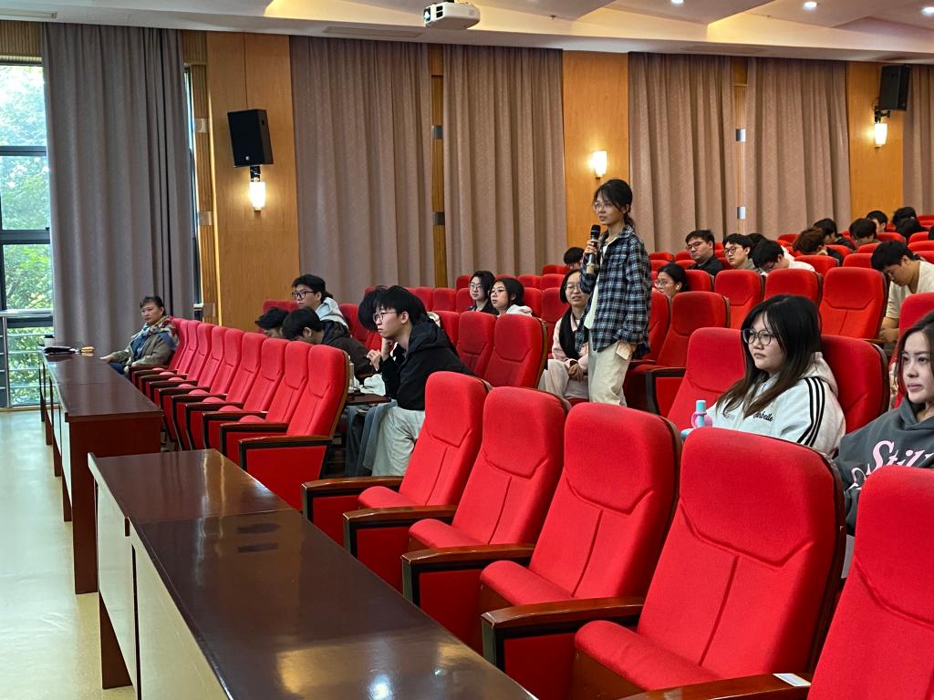 在随后的互动中,同学们积极发言,围绕校内如何学习、公司招聘看重什么能力、是否应该考研等现实问题向沈总请教。沈总结合自身经验,为同学们进行了悉心的解答。