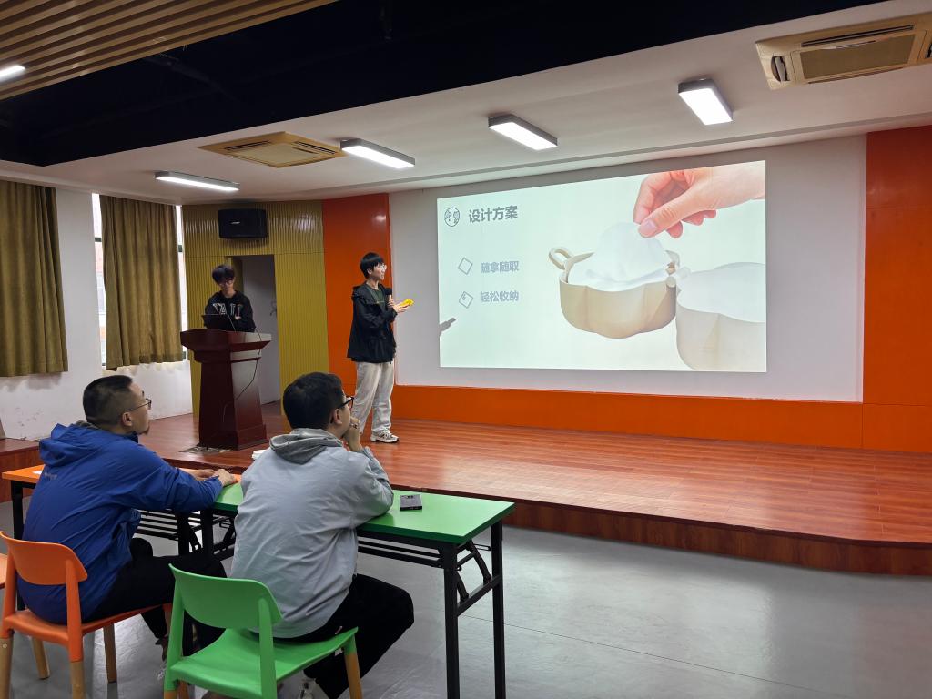 本次项目的选题直接源自企业实战。腾赢设计基于旗下“沈小达”品牌的发展规划,发布了牙线盒、收纳袋、厨房工具和旅游便携产品四大设计命题。项目中,同学们以3-4人小组的形式,完整经历了从市场调研、设计分析到设计定位与方案表达的全流程。在成果汇报会上,各小组从市场趋势和用户痛点入手,引出自己的设计概念,并对方案的使用场景与创新点进行了详细阐述。