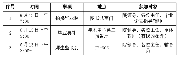 兹定于2016年6月13日(周一)举行毕业典礼,请相关人员准时出席,望相互转告。